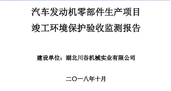 湖北川谷機械實業有限公司汽車發動機零部件生產項目竣 湖北川谷機械實業有限公司汽車發動機零部件生產項目竣工環境保護驗收公示 根據《建設項目環境保護管理條例》(國務院令第682號)和《建設項目竣工環境保護驗收暫行辦...