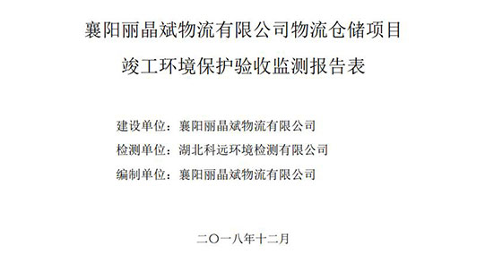 • 襄陽麗晶斌物流有限公司物流倉儲項目 竣工環境保護驗收公示2018-12-27